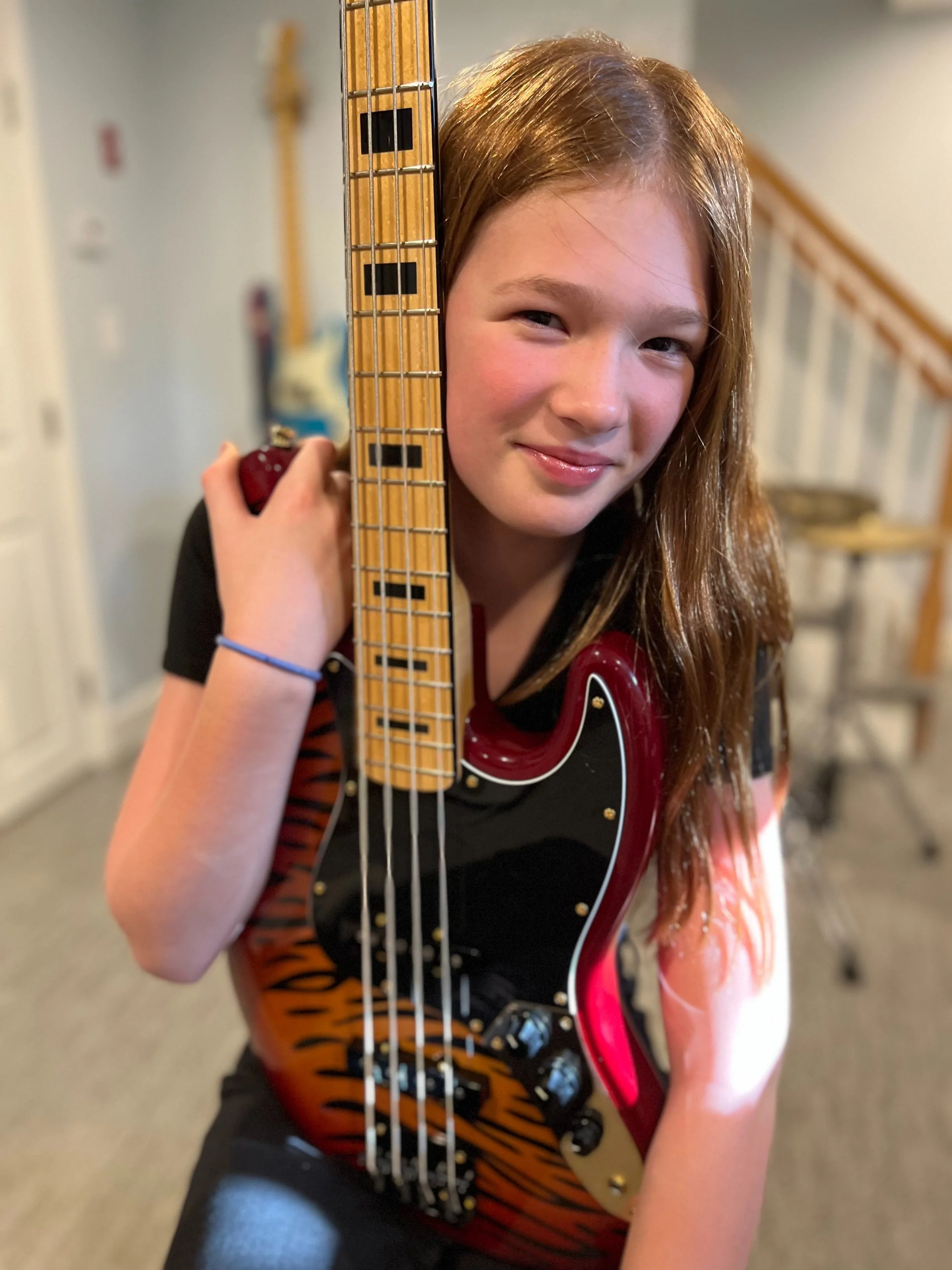 Ruby was thrilled to receive a new bass from Bite Guitars, a company located in Austria. She worked with Bite to customize the bass and designed it herself. To see this beauty close up, watch Ruby’s Instagram reel.