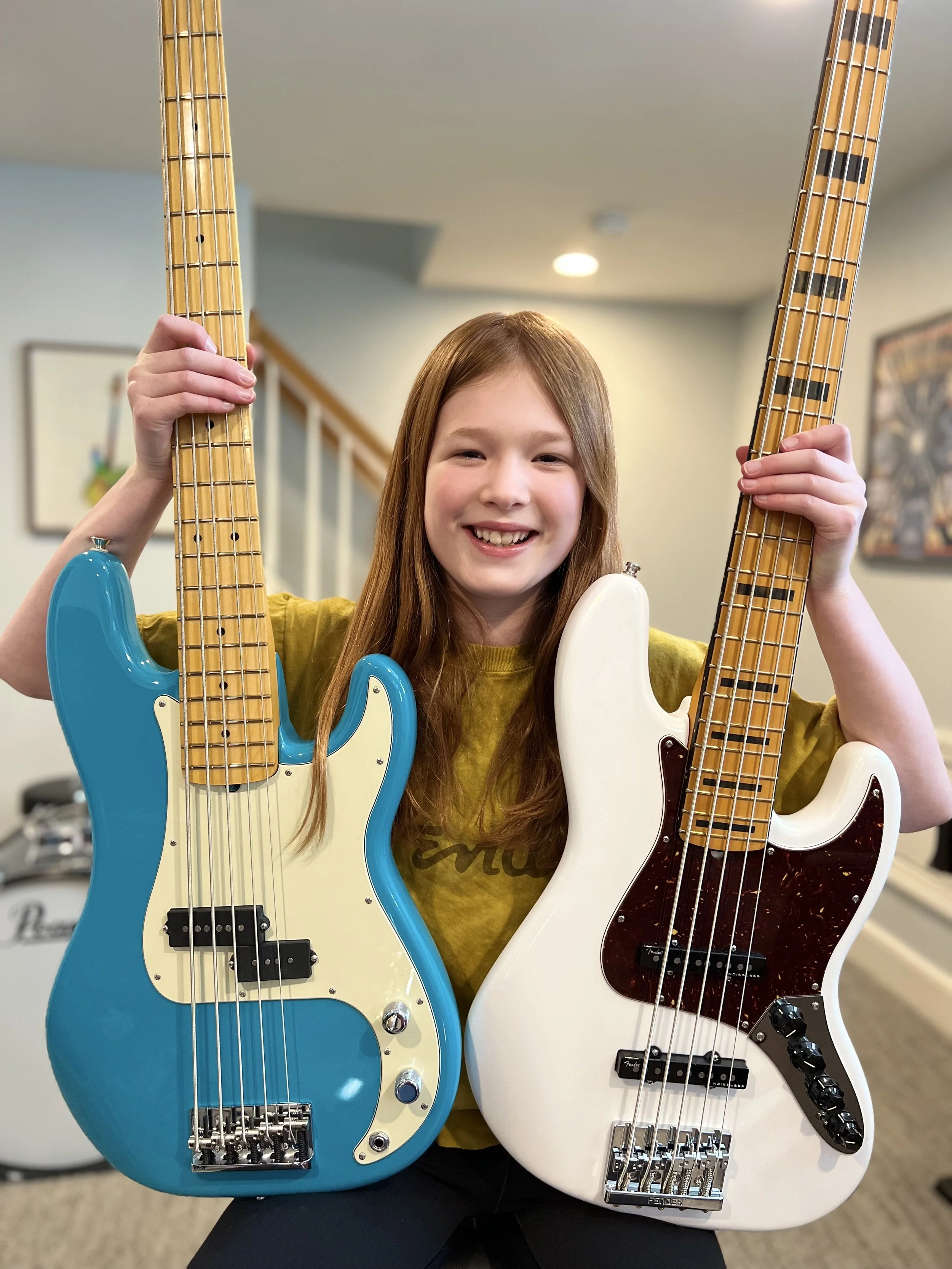 Ruby was thrilled to be given 2 beautiful 5 String Basses from Fender! Watch her Instagram reel to see her reaction.